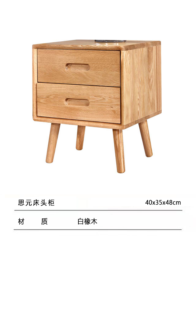 北欧原色系列实木白橡木卧室床头柜G05思元床头柜