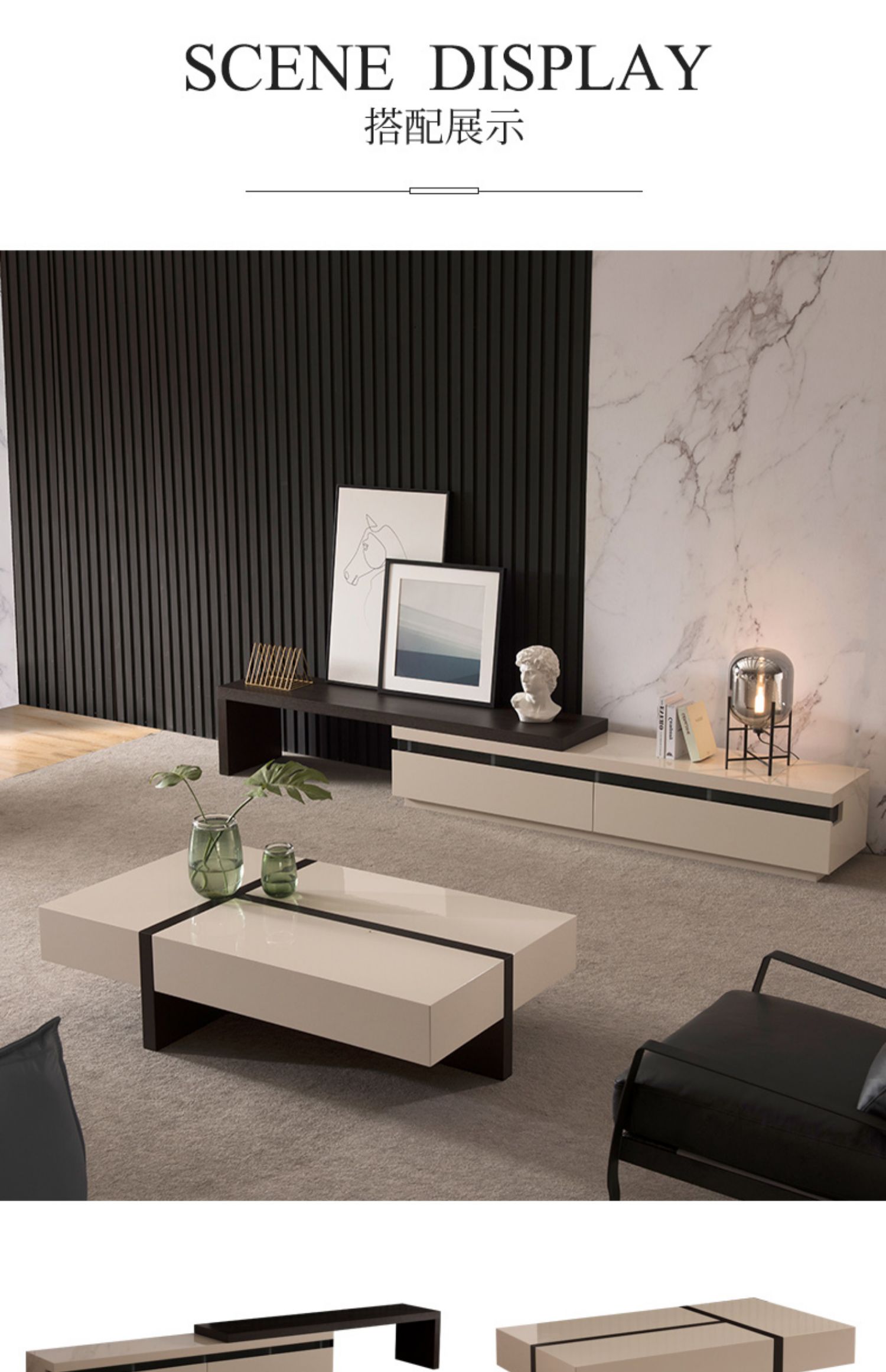 意式极简茶几电视柜组合套装小户型北欧电视机柜子伸缩地柜轻奢